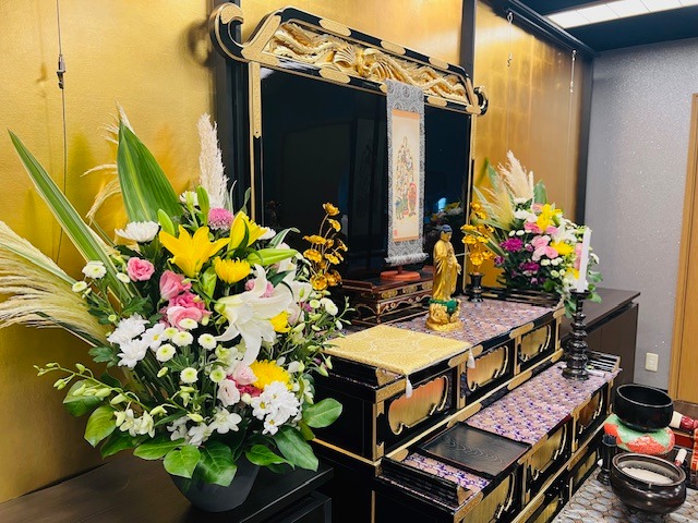 秋のお彼岸合同法要 今回の彼岸合同法要では、祭壇にとても素敵なお花を飾らせていただきました。このお花を用意してくださったのは、花の店【ショパン】さんです。🌸 普段からお参りのお花や、法要のお花もおねがいしていて、いつも季節にあったきれいなお花を用意してくださいます。 センス良く秋を感じられるお花のおかげで、祭壇もやさしく華やかな雰囲気になりました。 これからも、【ショパン】さんのお花と一緒に、温かい法要の場を作っていければと思います。