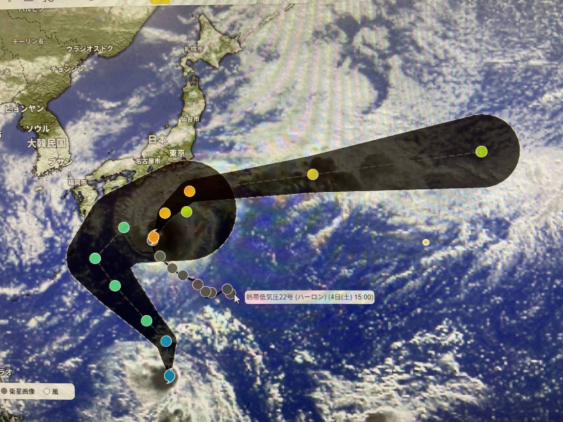 台風はどこへ… こんにちは。 先日近づいていた台風22号は少しそれ、今日はまた夏を思い出すような暑さですね🌞 10月は台風が多い印象がありますが、秋は海面水温がまだ比較的高いことで、それが台風の発達を助ける要因になるそうです。 2025年は 9〜10月にかけて台風接近数が“平年並みかやや多め”の可能性がある、との見通しも出ているとか、、、 台風22号の下にも熱帯低気圧が発生しており、日本に向かって北上中。。。 一難去ってまた一難。 台風に変わらないことを願うばかりです。 皆さまも気温、天気の変化に体調を崩さないようお気を付けくださいませ。